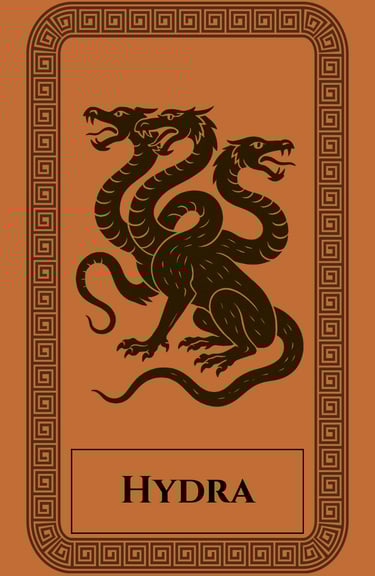 The Hydra represents the shadow self — the parts of the psyche that multiply when fought without understanding. It is the embodiment of recurring pain, addiction, fear, and repression. Yet within its venom lies medicine: the power to confront what seems monstrous and turn it into strength.