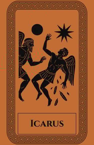 The wound of Icarus is disconnection from guidance — the pain of not listening or being unheard. It speaks to rebellion born from longing: the desire to rise above limits, to prove your own wings. This wound can show up as overreaching or self-sabotage when your passion outruns your patience.