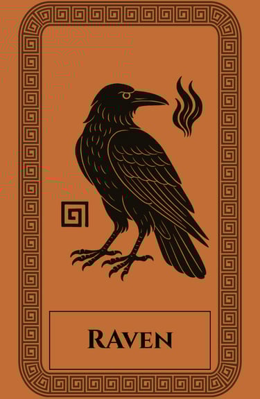 In Greek and other ancient traditions, the Raven is the bird of prophecy, sacred to Apollo, god of light and oracles. Once said to have been white, the Raven’s feathers turned black when it carried bad news to the god — transforming it forever into the bearer of hidden truths. It was sent between worlds as messenger and observer, dwelling at the threshold between light and shadow, death and rebirth.